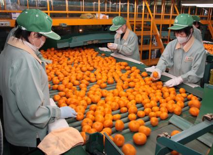 組合員は肥料、農薬、収穫日の記録をインターネットにより、自宅から農協の生産履歴システムに入力して管理されています。生産の安全が確認されたみかんが選果場に運ばれ出荷していきます。